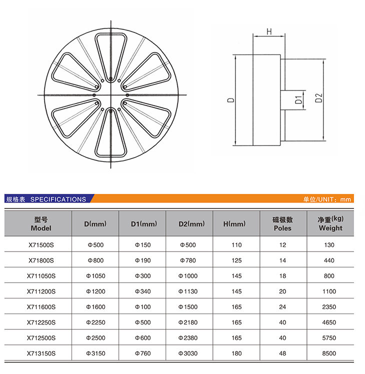 X71-S 扇形極圓形電永磁吸盤