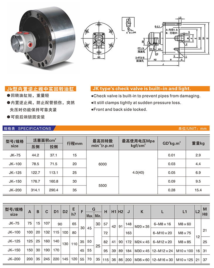 JK 內(nèi)置逆止閥中實(shí)回轉(zhuǎn)油缸