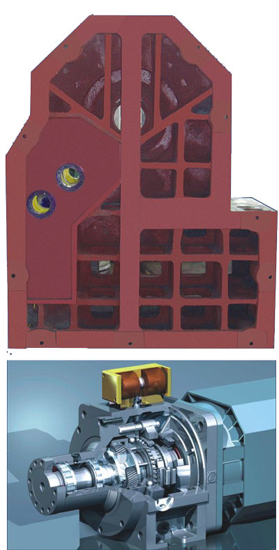 ■ 車身橫梁、底座均采用優(yōu)質(zhì)樹(shù)脂砂鑄鐵,厚肋板及多層箱體結(jié)構(gòu),經(jīng)回火及時(shí)效處理,確保高剛性及穩(wěn)定性; ■ 立柱橫梁均采用寬雋星導(dǎo)軌,承載能力及抗震性好; ■ 橫梁承載導(dǎo)軌采用鑲鋼導(dǎo)軌,滾滑導(dǎo)軌,滾滑符合結(jié)構(gòu),耐用,摩擦阻力小; ■ 滑枕采用優(yōu)質(zhì)合金鋼鍛件,材質(zhì)致密耐磨,強(qiáng)度高; ■ 精度研磨大齒輪,配合德國(guó)ZF變速箱,使機(jī)床兼具高速型能及大扭矩輸出。 |